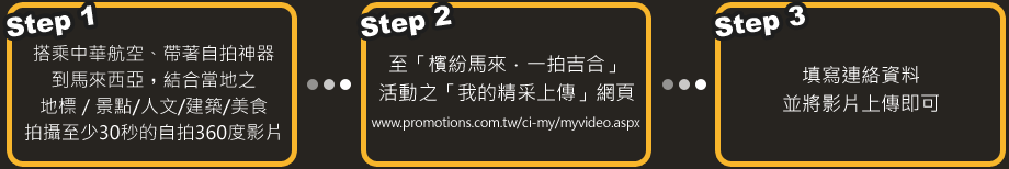 主辦單位擁有參加者所上傳影片之使用權,並僅作為推廣馬來西亞及中華航空之宣傳使用。 |