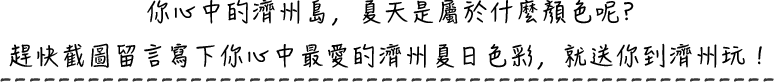 3.寫下ex :「藍色的月汀里海邊就是我心目中最美的濟州島!」並@標記一位好友,即可參加抽獎。