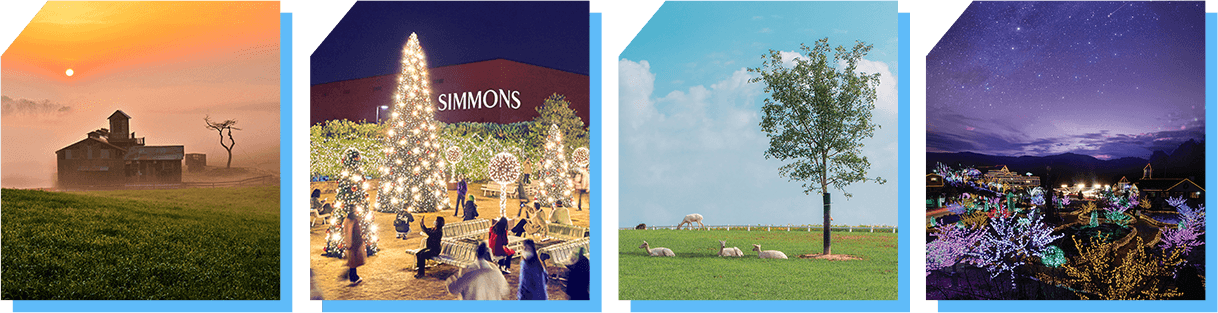 是近期韓國最受注目的大型商城!2021年9月新開幕,鄰近白雲湖、坐落山林間,多棟夢幻玻璃屋造型相當夢幻,是以「